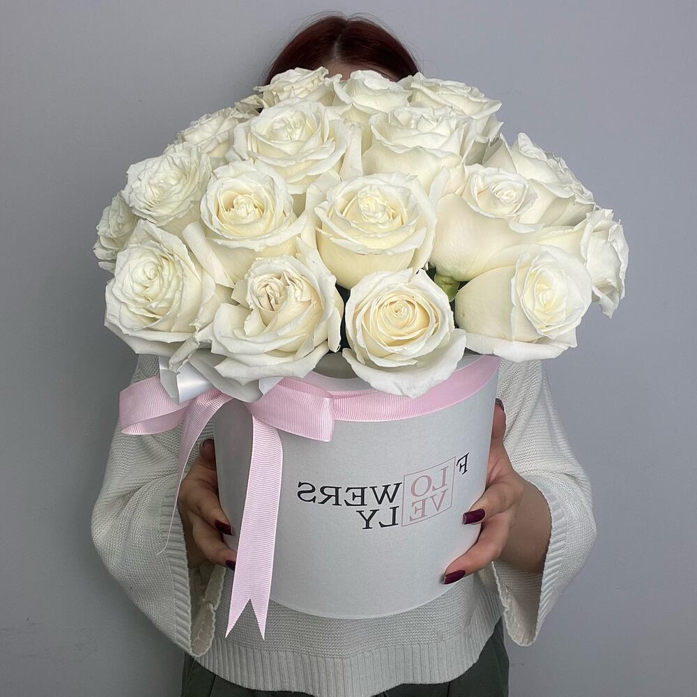 Большой стильный букет в шляпной коробке