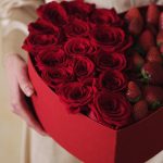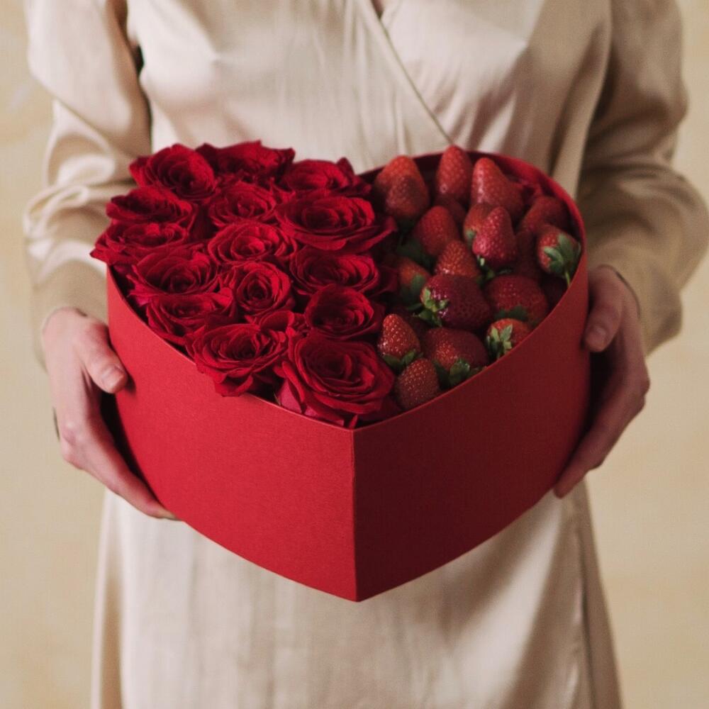 Коробка с клубникойКлубникаРозыКрасные розы