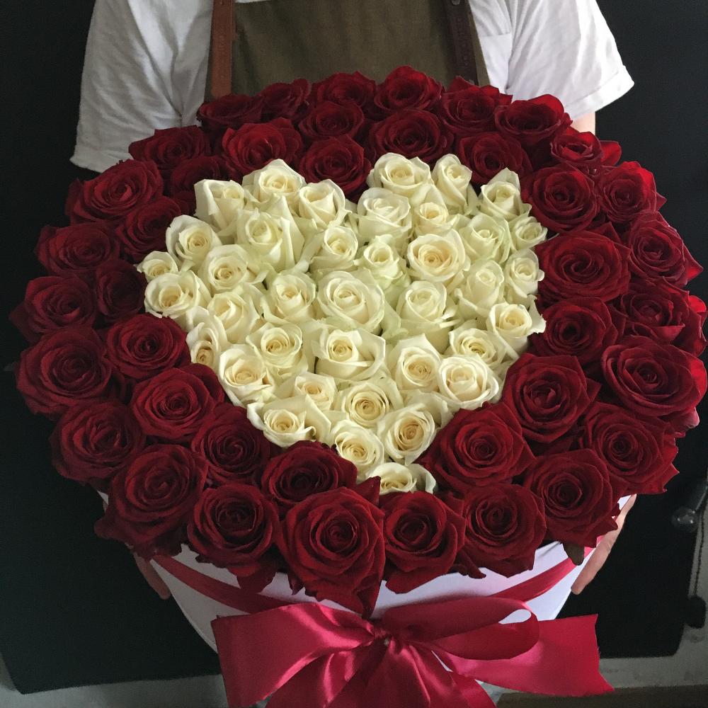 Яркая коробочка собрана из роз в виде сердца. Коробка станет прекрасным подарком по поводу и без. Особенно душевным подарком к 8 марта