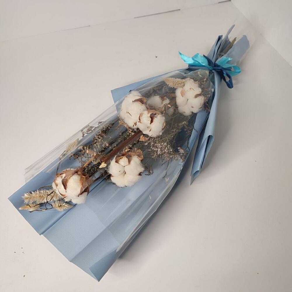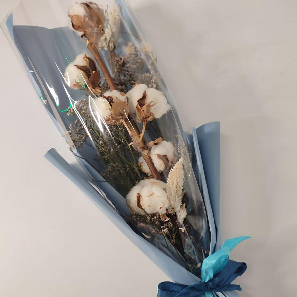 Хлопок – 1 шт.Лимониум – 3 шт.Сухоцвет – 1 шт.