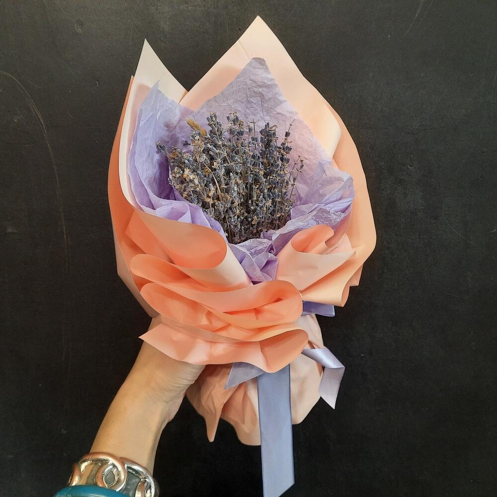Лаванда – 75 шт.Лента атласная – 2 шт.Тишью – 1 шт.Калька – 2 шт.