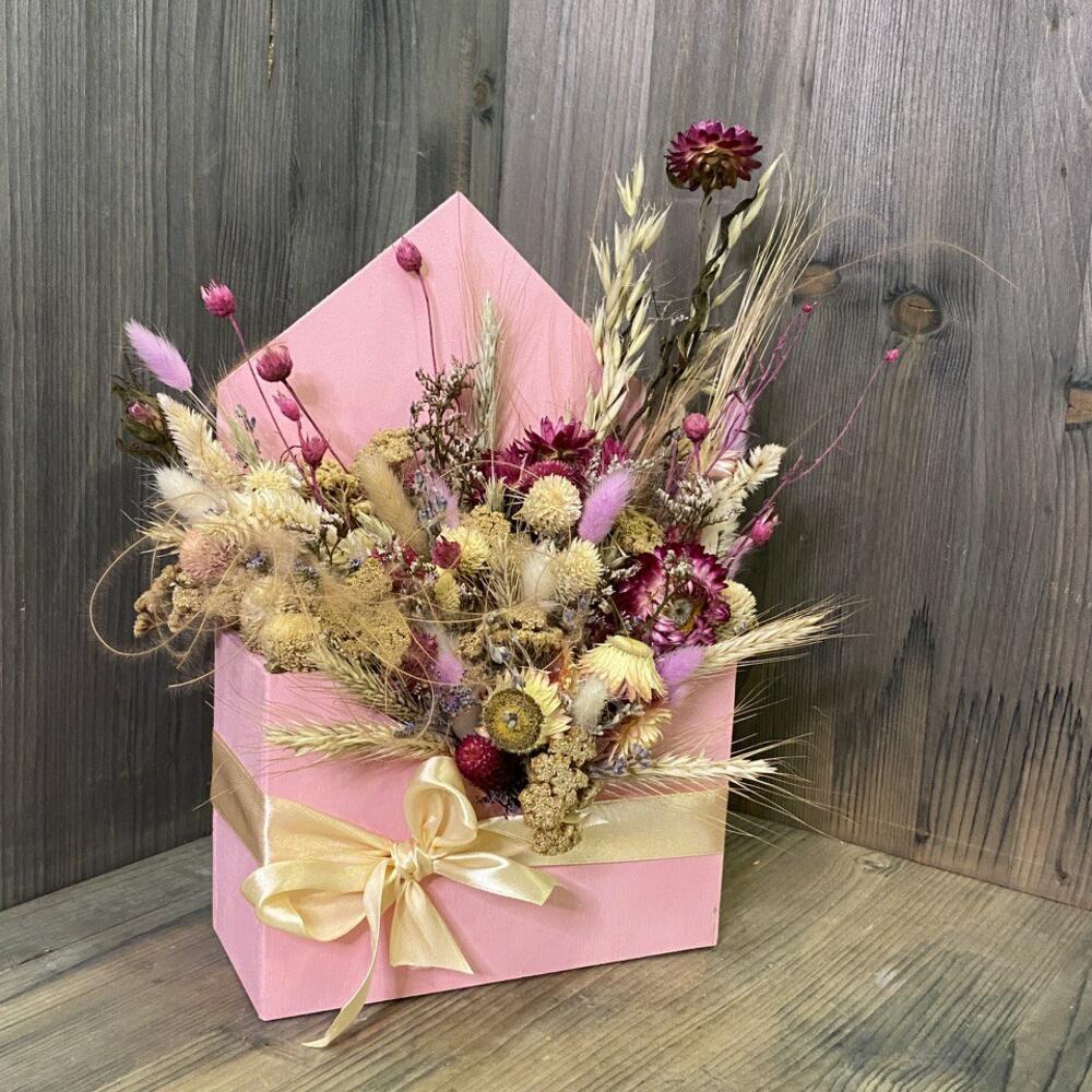 Конверт деревянный – 1 шт.Оазис для сухоцветов – 1 шт.Ковыль – 2 шт.овес сухоцвет – 2 шт.Рожь – 5 шт.Пшеница (сухоцвет) – 10 шт.Лагурус – 25 шт.Лаванда сухоцвет – 10 шт.прочие сухоцветы – 30 шт.