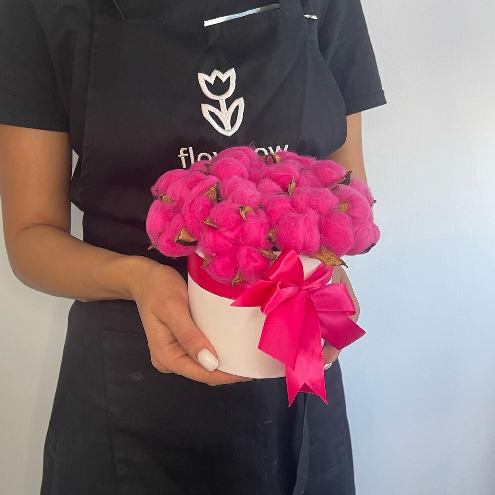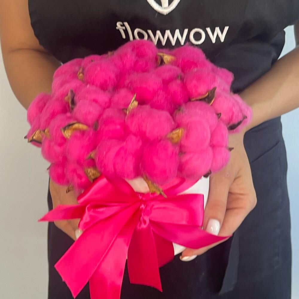 Красивая и яркая композиция из хлопка для самых яркихУважаемые посетители! Пожалуйста обратите ваше внимание на размер букета при заказе! Он учитывается вместе с упаковкой