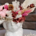 Интерьерная высокая композиция из сухоцветов и декоративных цветов