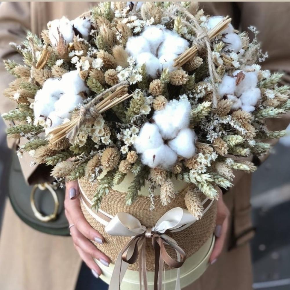 Потрясающая коробочка с модными в этом сезоне сухоцветами ! Шляпная коробка отлично подойдёт для любого интерьера ! Отличный вариант вечного букета ) ведь такая композиция не требует ухода и простоит долгие годы , напоминая о Вас ) Это идеальный подарок для любой хозяйки … Показать ещё. Дарите цветы без повода ! Создавайте хорошее настроение .