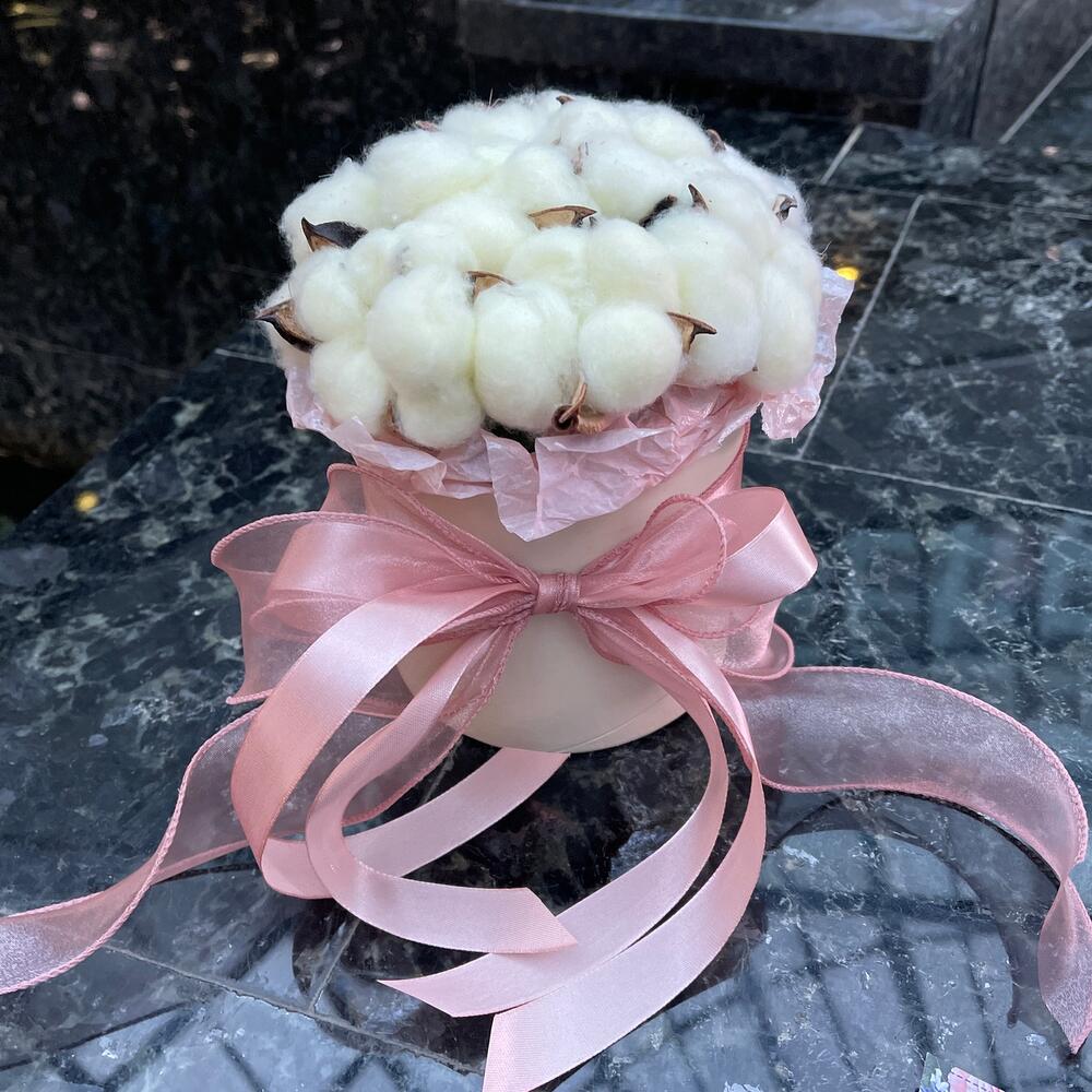 «Лавандовое созвездие» Букет из розы, гвоздики, статица и хлопка