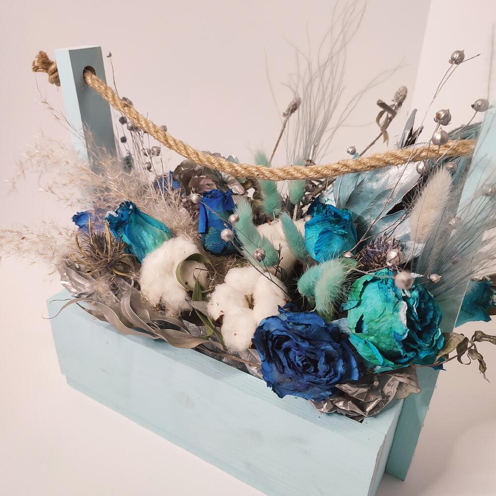 Необычная композиция сухоцветов в голубых оттенках будет очень долго радовать вас и ваших близких.