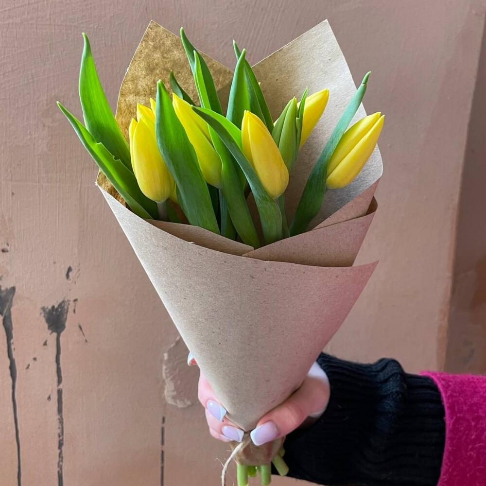 Крафтовая упаковка – 1 шт.Тюльпан желтый – 9 шт.