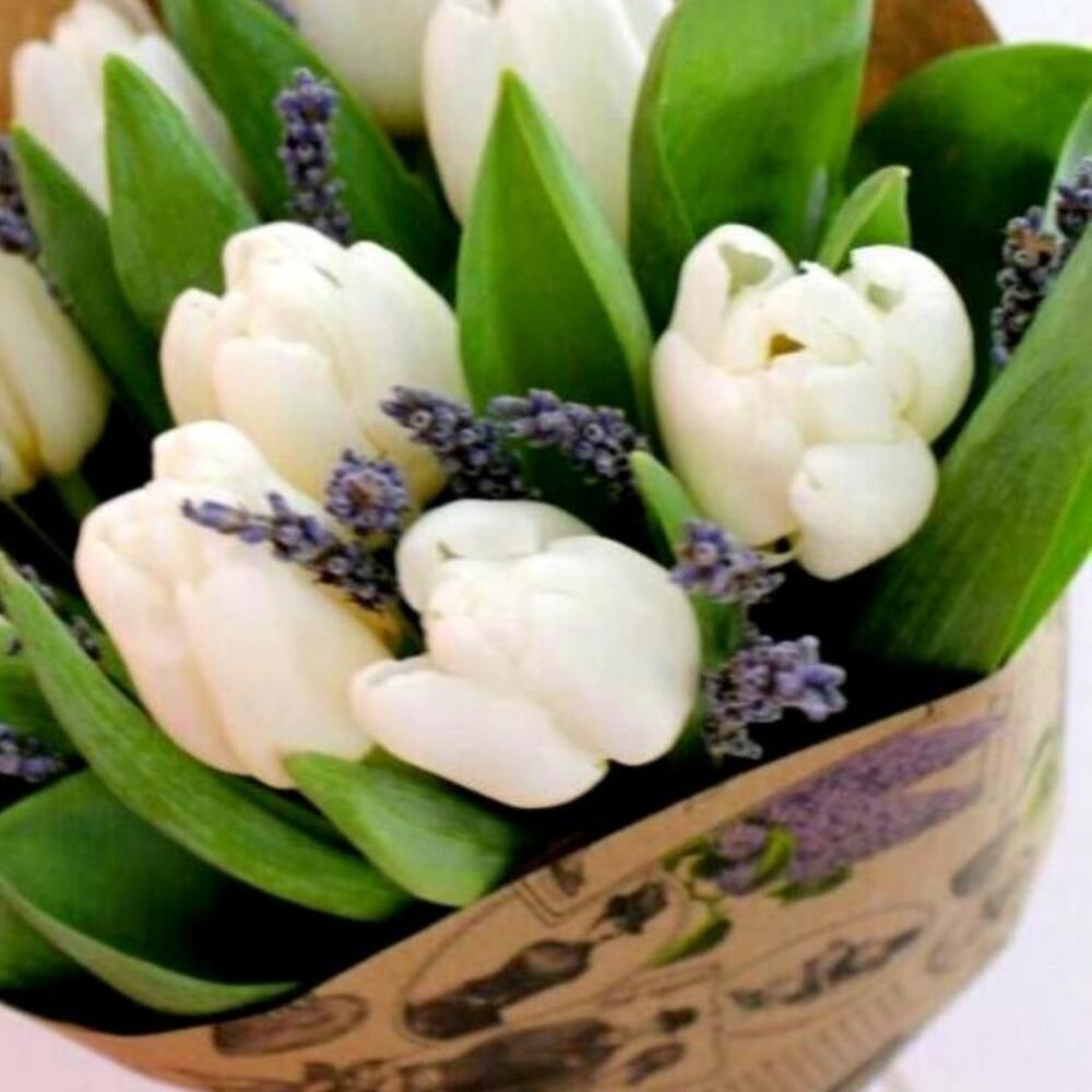 Лаванда (сухоцвет) – 35 шт.Тюльпан – 11 шт.Лента атласная – 1 шт.Крафт упаковка – 1 шт.