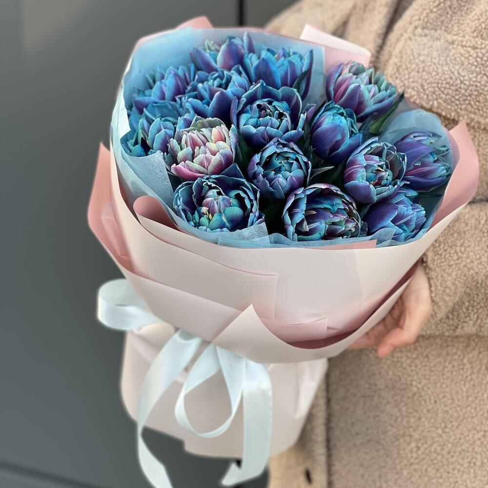 Букет из 15 пионовидных тюльпанов в оформлении!
