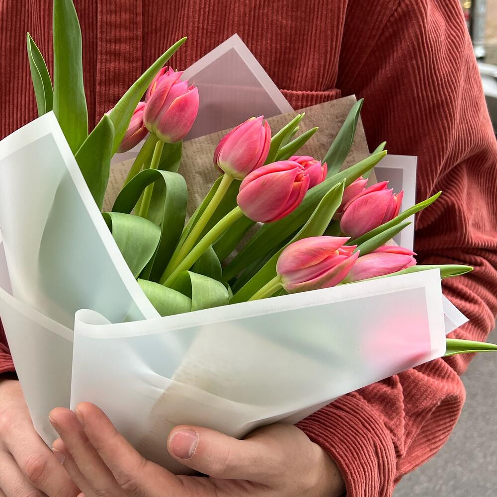 Тюльпан розовый – 15 шт.упаовкка дизайнерская – 2 шт.