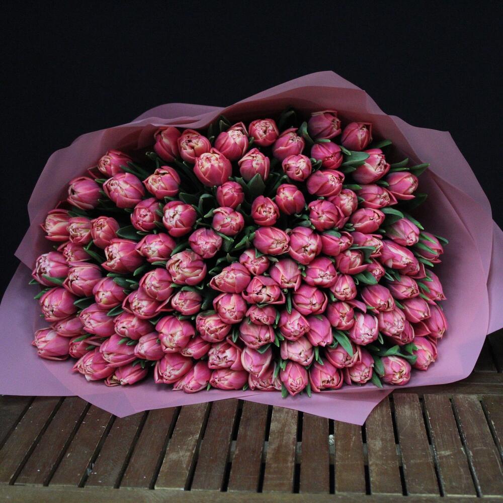 mono bouquet 110 из 101 пионовидного тюльпана сорта Columbus