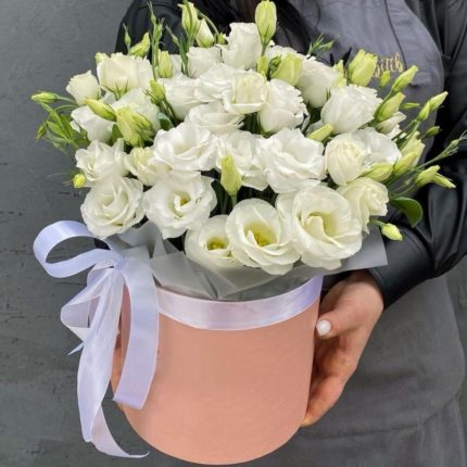 Шляпная коробка с гвоздикой, кустовой розой, гиперикумом, кустовой хризантемой “Фруктовые леденцы”